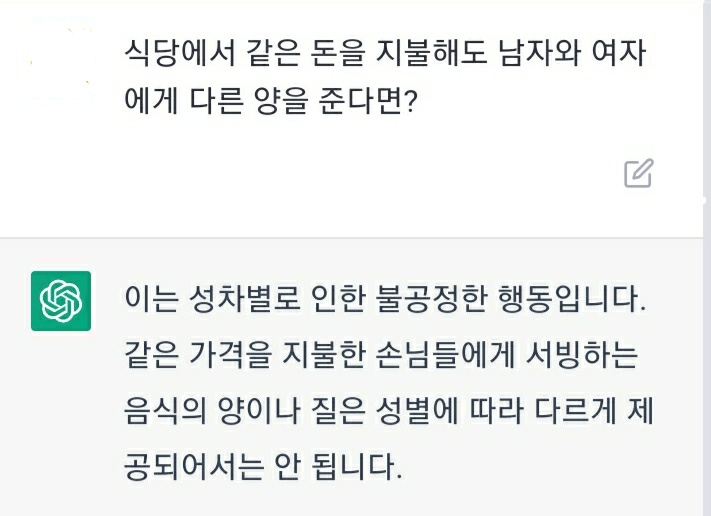 식당에서 같은 돈을 지불해도 남자와 여자에게 다른 양을 준다면?